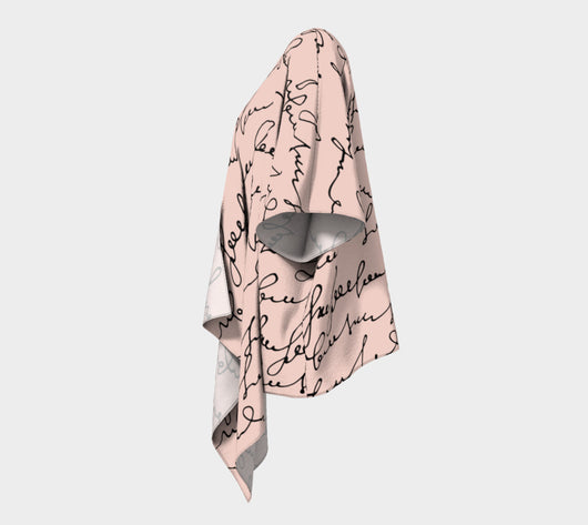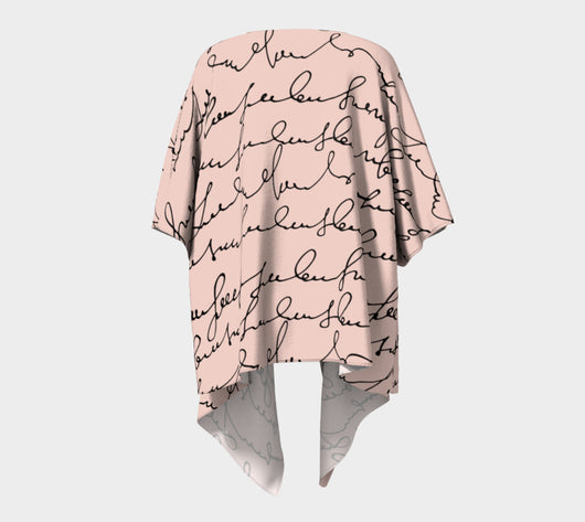 Draped kimono made in your choice of chiffon or silky knit. Add fringe for an extra touch of glamour. Easy to throw on or dress up in.